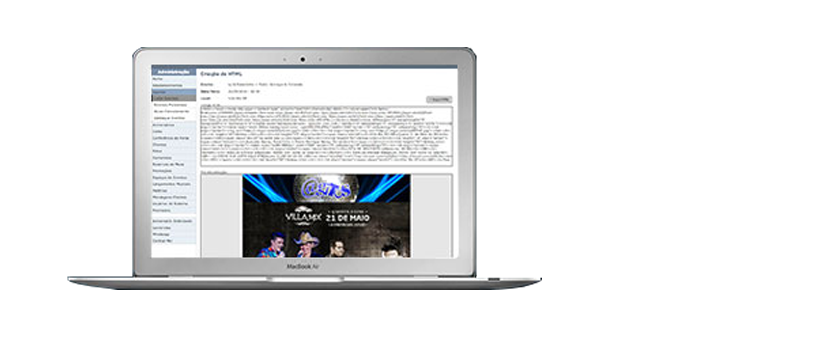 A falta de informações é coisa do passado, não dependa mais de terceiros e não se preocupe mais com a atualização da programação online ou qualquer informação. Com nosso módulo de CONTROLE DE PROGRAMAÇÃO você pode atualizar ou criar qualquer evento 24 horas por dia. Além disso para agilizar o marketing, com um clique você CRIA MENSAGENS HTML para realizar disparos de campanhas de emails.